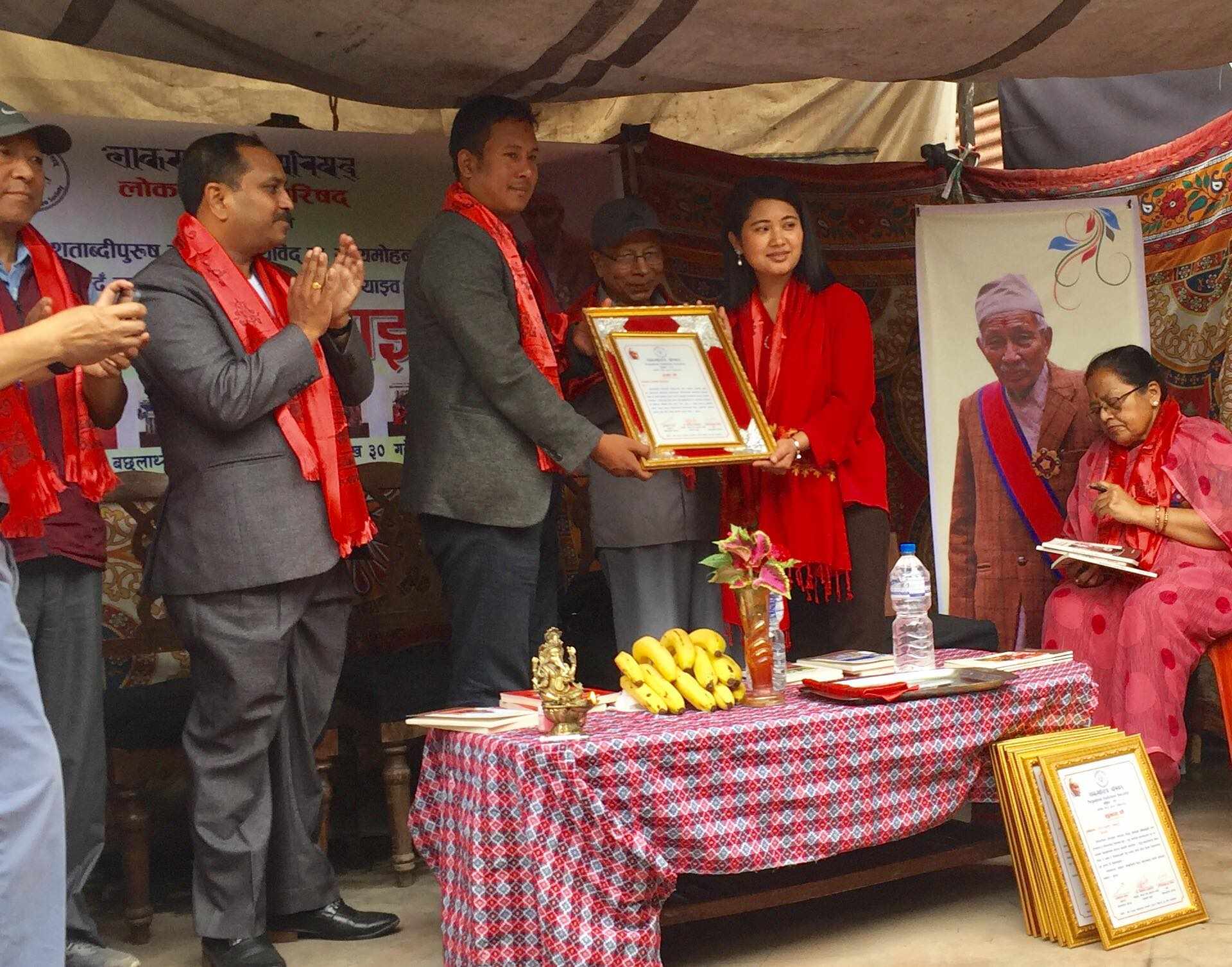 सत्यमोहन जोशीको फोटो सगरमाथामा पुरयाएका महर्जन सम्मानित