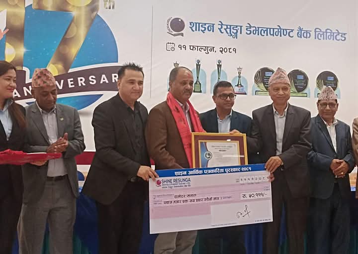 शाइन रेसुङ्गा बैंकको १७ औं बार्षिकाेत्सव : खनाललाई आर्थिक पत्रकारिता पुरस्कार