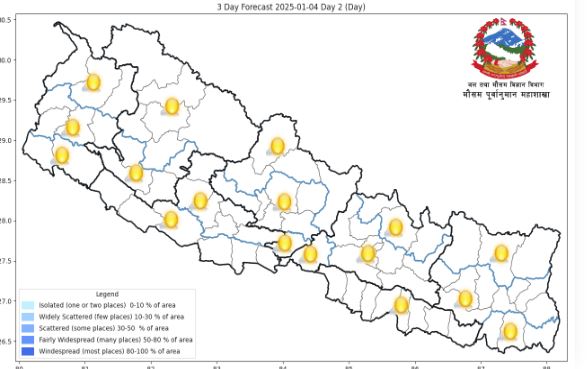 आजको मौसम : पश्चिमी वायुको सामान्य प्रभाव रहने
