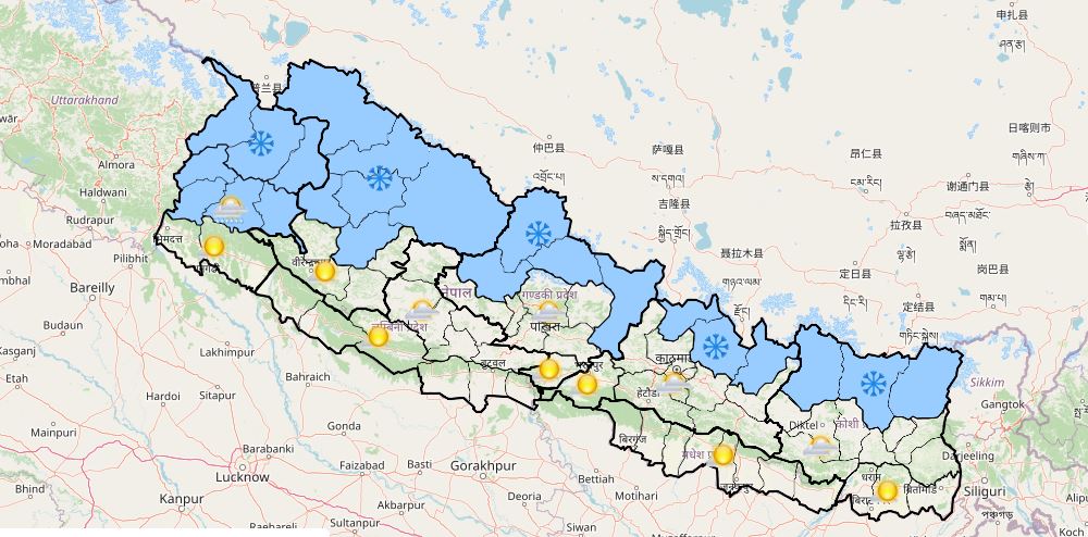 आजको मौसम : पहाडमा हल्का बर्षा र हिमाली भेगमा हिमपात हुने