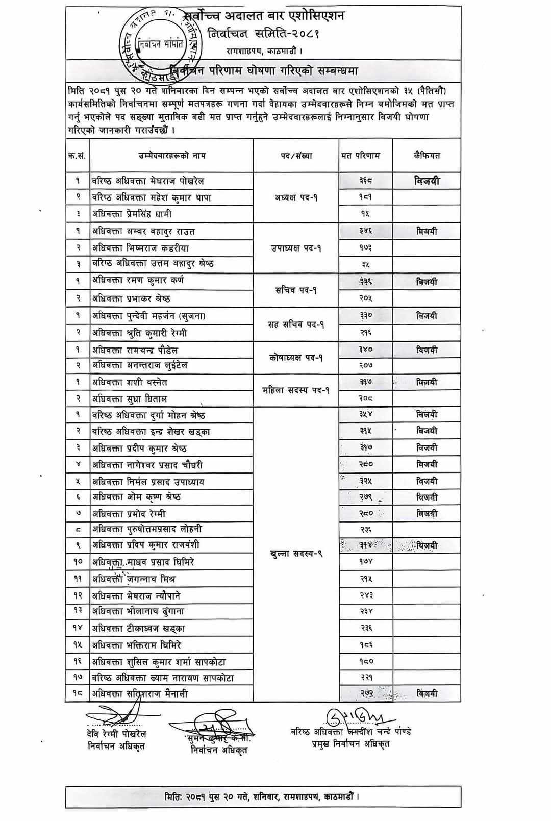 सर्वोच्च बार एशोसयएसनको निर्वाचनमा लोकतान्त्रिक समूह विजयी
