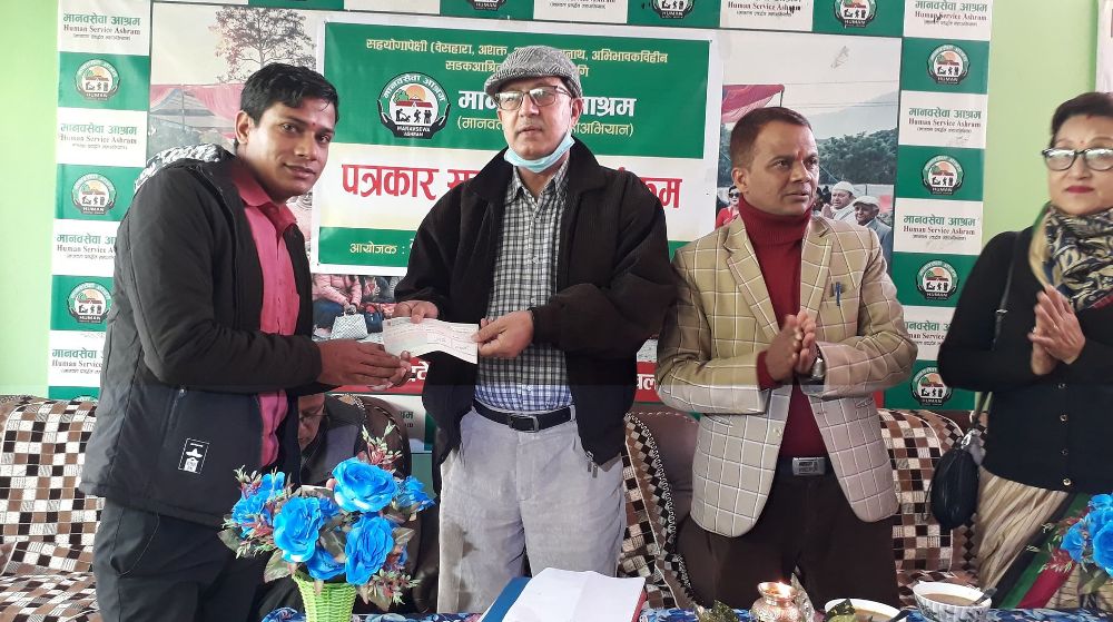 पुरस्कारको रकम मानव सेवा आश्रमलाई प्रदान