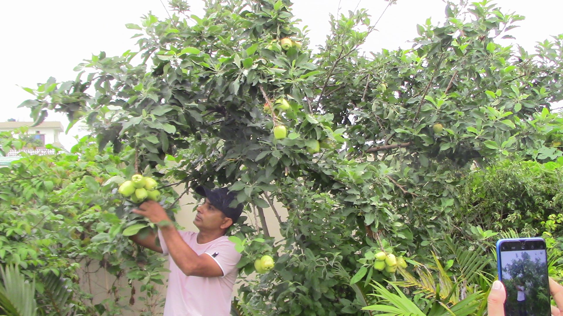 कृषिमन्त्री पौडेलद्धारा मणिग्राममा फलेको स्याउको निरीक्षण