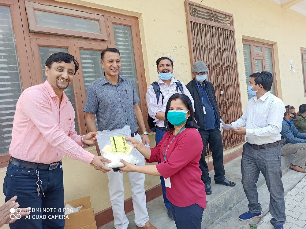 औषधी व्यवसायीद्धारा पत्रकारलाई मास्क र सेनीटाइजर प्रदान