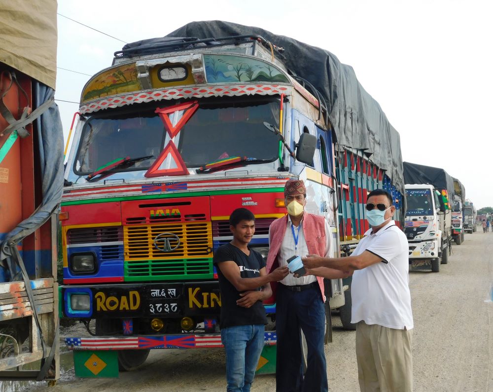 ट्रकका चालक र सहचालकलाई माक्स प्रदान