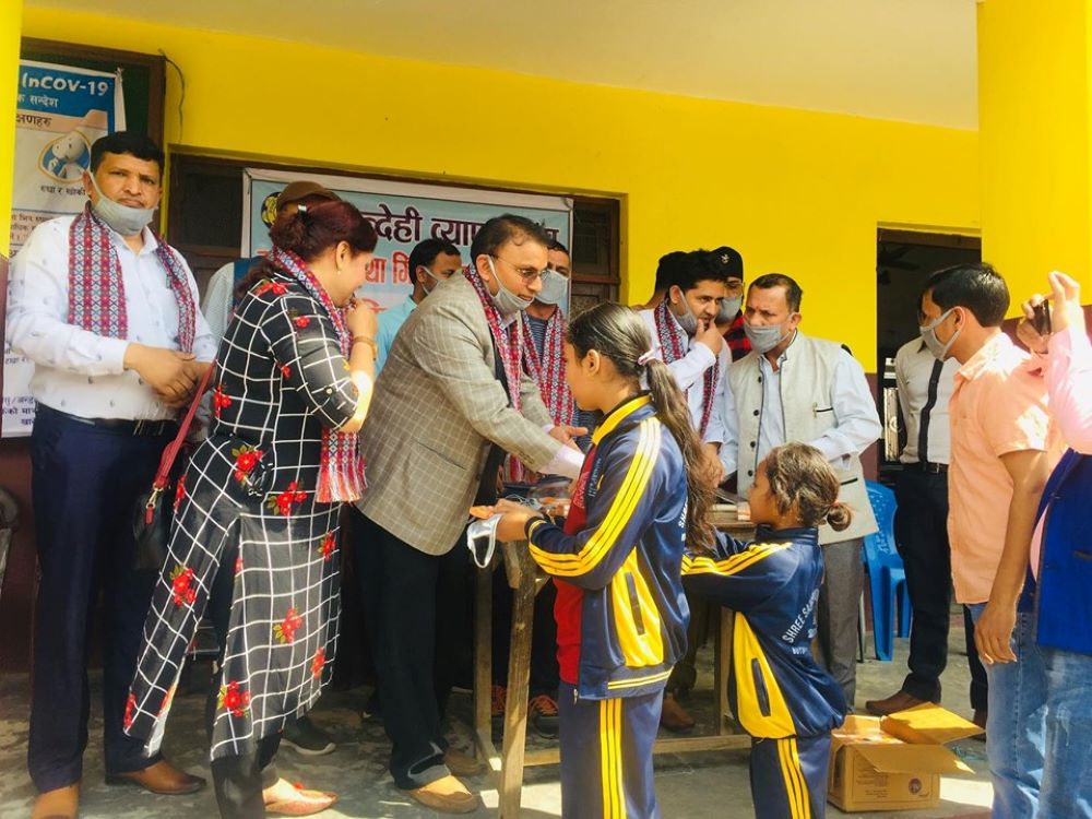 व्यापार संघद्वारा विद्यालयमा माक्स तथा साबुन वितरण