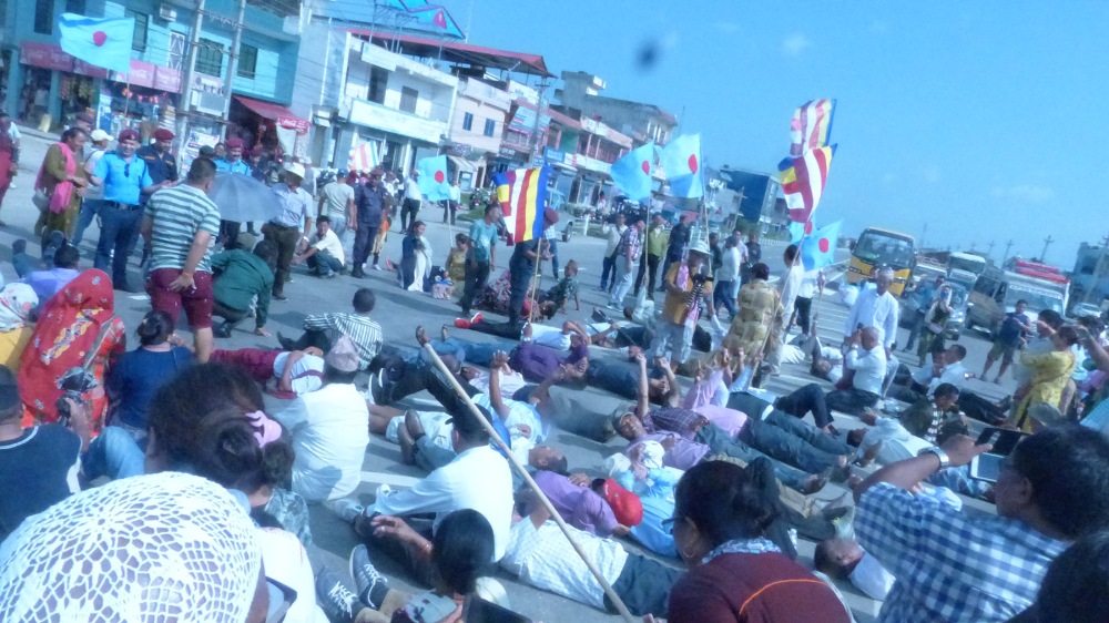 बुद्धमुर्ति तोडफोड गर्नेलाई पक्राउ गर्न दवाब दिन राजमार्ग मै सुते स्थानिय