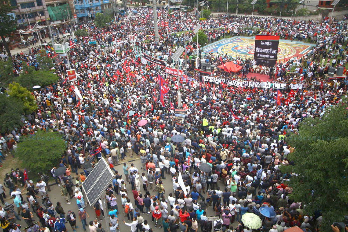गुठी विधेयक खारेजीको माग गर्दै माइतीघरमा मानवसागर