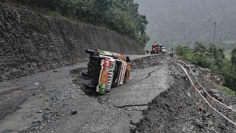 नारायणगढ-मुग्लिङ्ग सडकको ९ किलोमा सडक भाँसियो