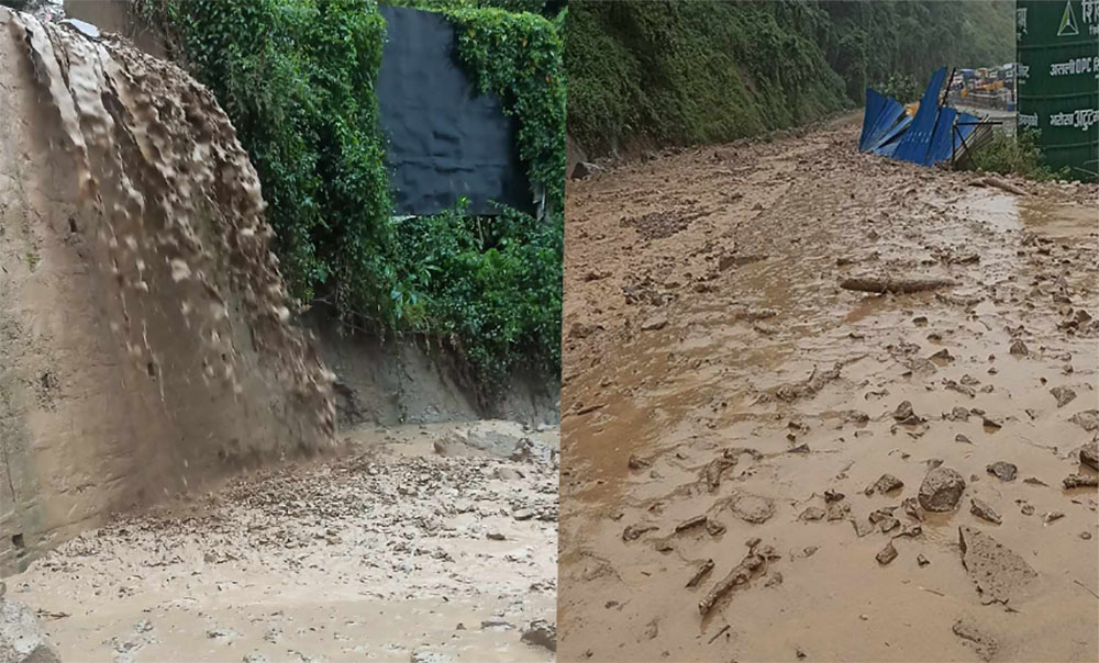 मुग्लिङ-काठमाडौँ सडक खण्डमा एक दर्जनभन्दा बढी स्थानमा पहिरो