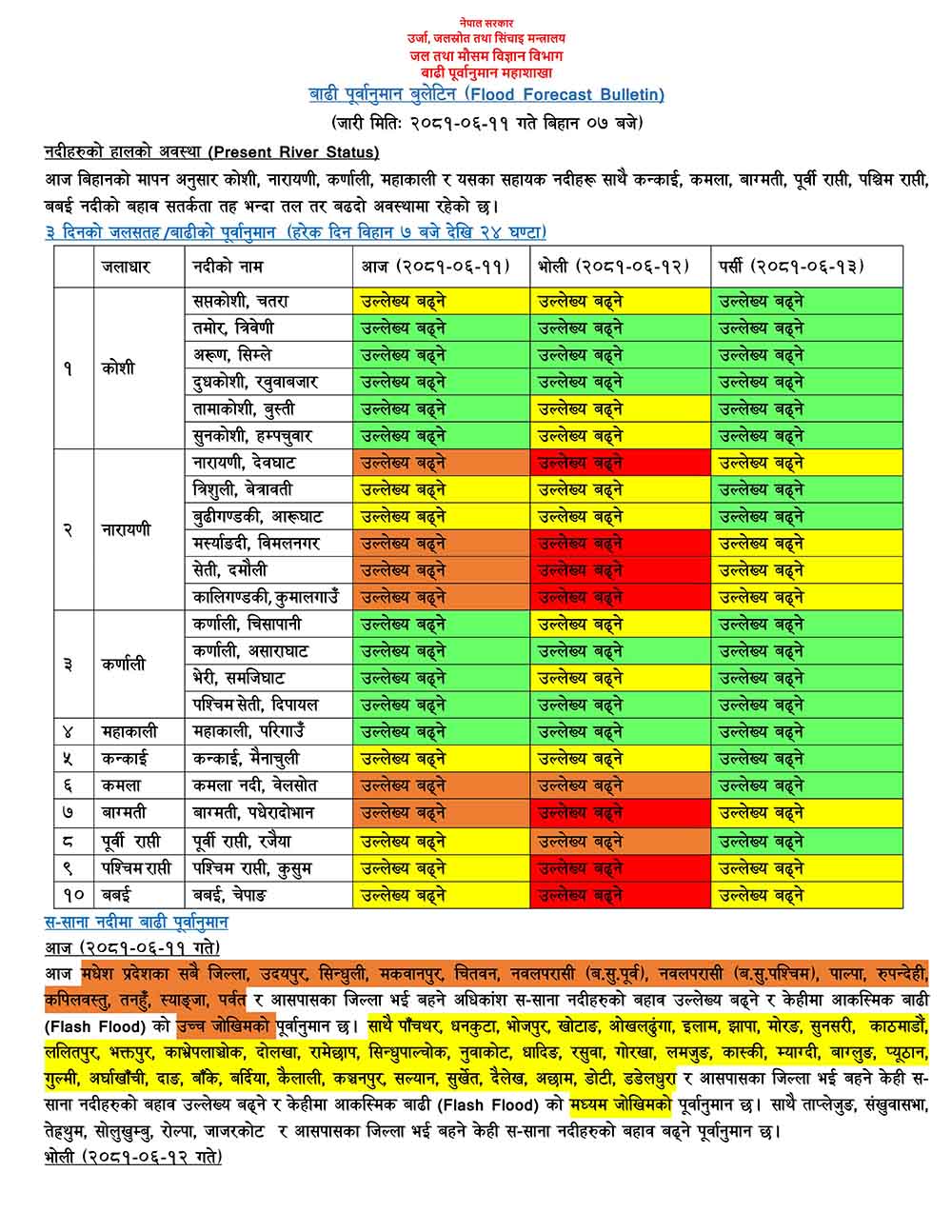 देशका यी नदीहरुको जल सतह बढ्ने, सतर्क रहन आग्रह