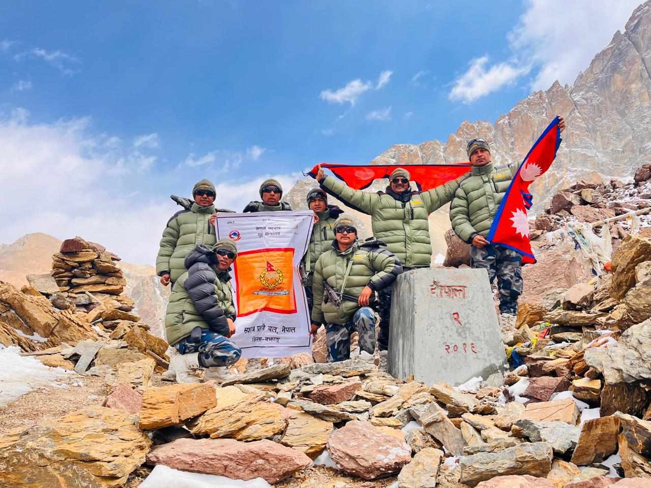 सशस्त्र प्रहरीद्धारा नेपाल चीन सीमाका स्तम्भको अनुगमन