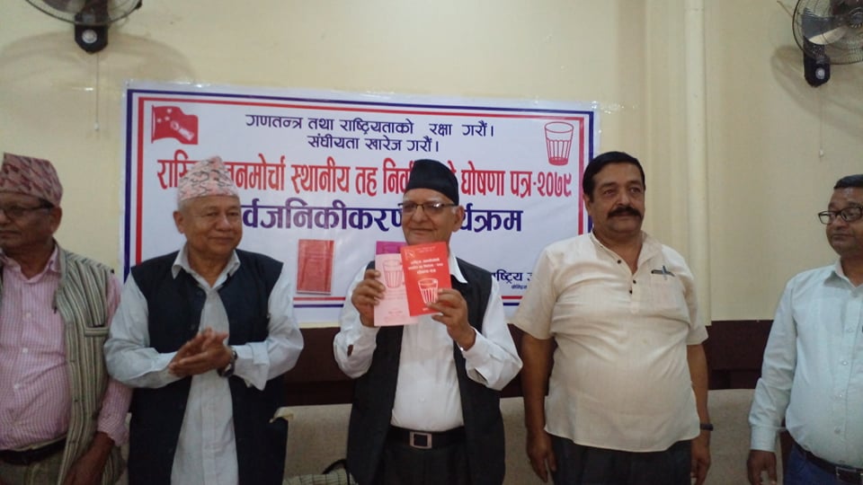 राष्ट्रिय जनमोर्चाको चुनावी घोषणापत्र सार्वजनिक : संघीयता खारेजी मुख्य मुद्धा