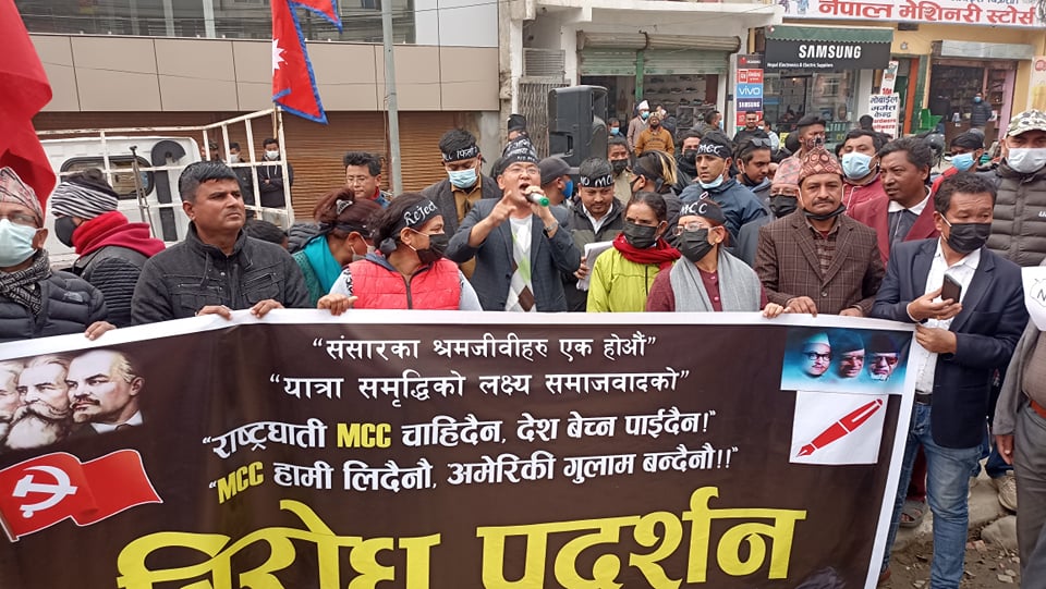 काठमाण्डौंमा एमसीसी विरुद्ध २२ दलीय गठबन्धनको विरोध प्रदर्शन
