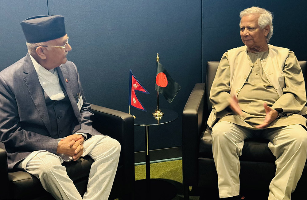 प्रधानमन्त्री ओली र बंगलादेशका अन्तरिम सरकार प्रमुख युनुसबीच भेटवार्ता