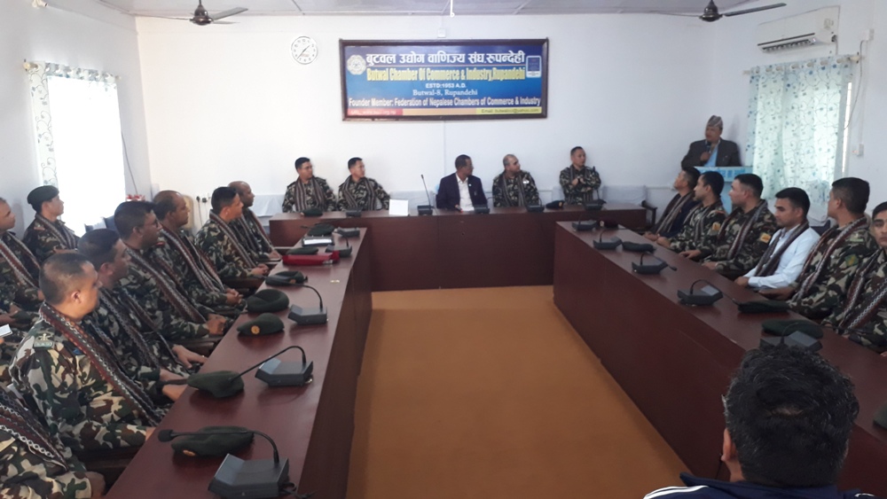 नेपाली सेनाका सैनिक अधिकृतहरुलाई बुटवल उद्योग बाणिज्य संघमा स्वागत