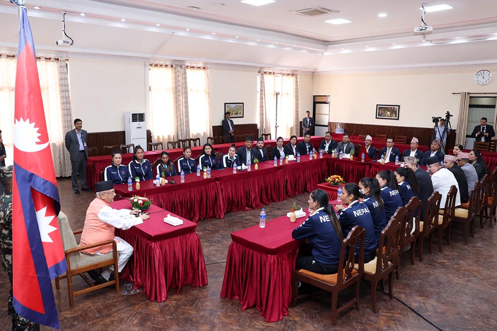 प्रधानमन्त्री ओलीले गरे महिला भलिबल खेलाडीसँग संवाद, अन्तर्राष्ट्रियस्तरको कभर्ड हल बनाउने बाचा