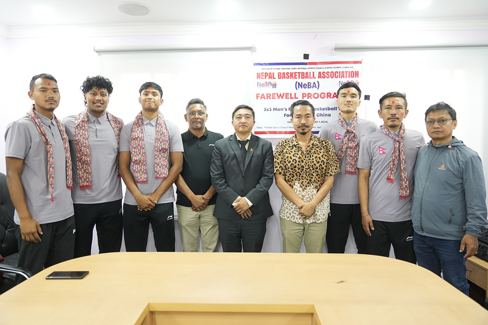 चीनमा हुने थ्री बाइ थ्री बास्केटबलमा सहभागी खेलाडीको बिदाई