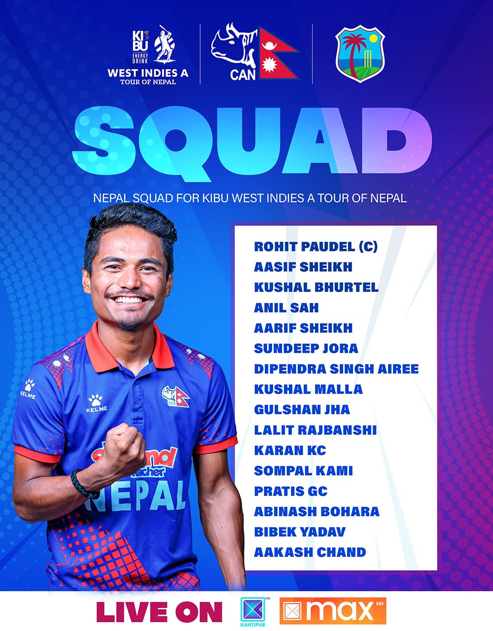 वेस्ट इन्डिज ए विरुद्ध खेल्ने नेपाली टिमको घोषणा