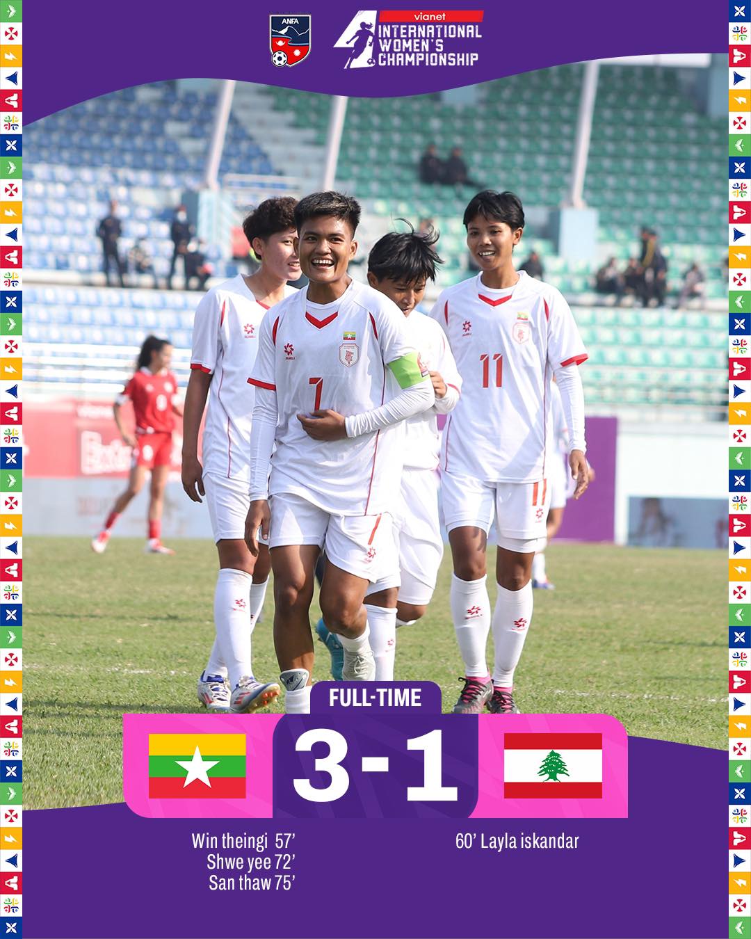 अन्तर्राष्ट्रिय महिला च्याम्पियनसिपको उदघाटन खेलमा म्यानमार बिजयी