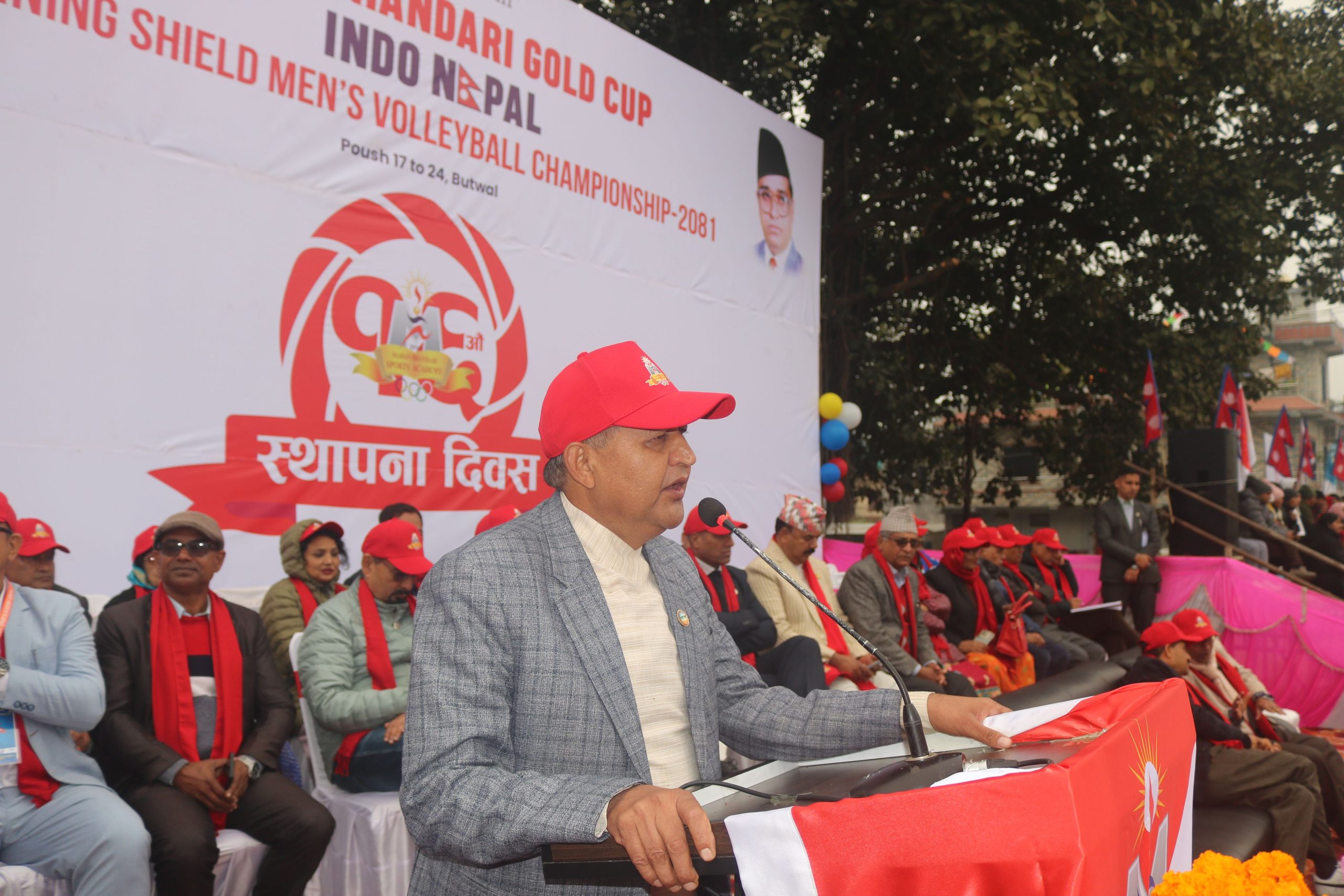 बुटवलमा मदन भण्डारी गोल्डकप रनिङ शिल्ड इन्डो नेपाल पुरुष भलिबल च्याम्पियनसीप सुरु , मुख्यमन्त्री आचार्यद्धारा उद्घघाटन