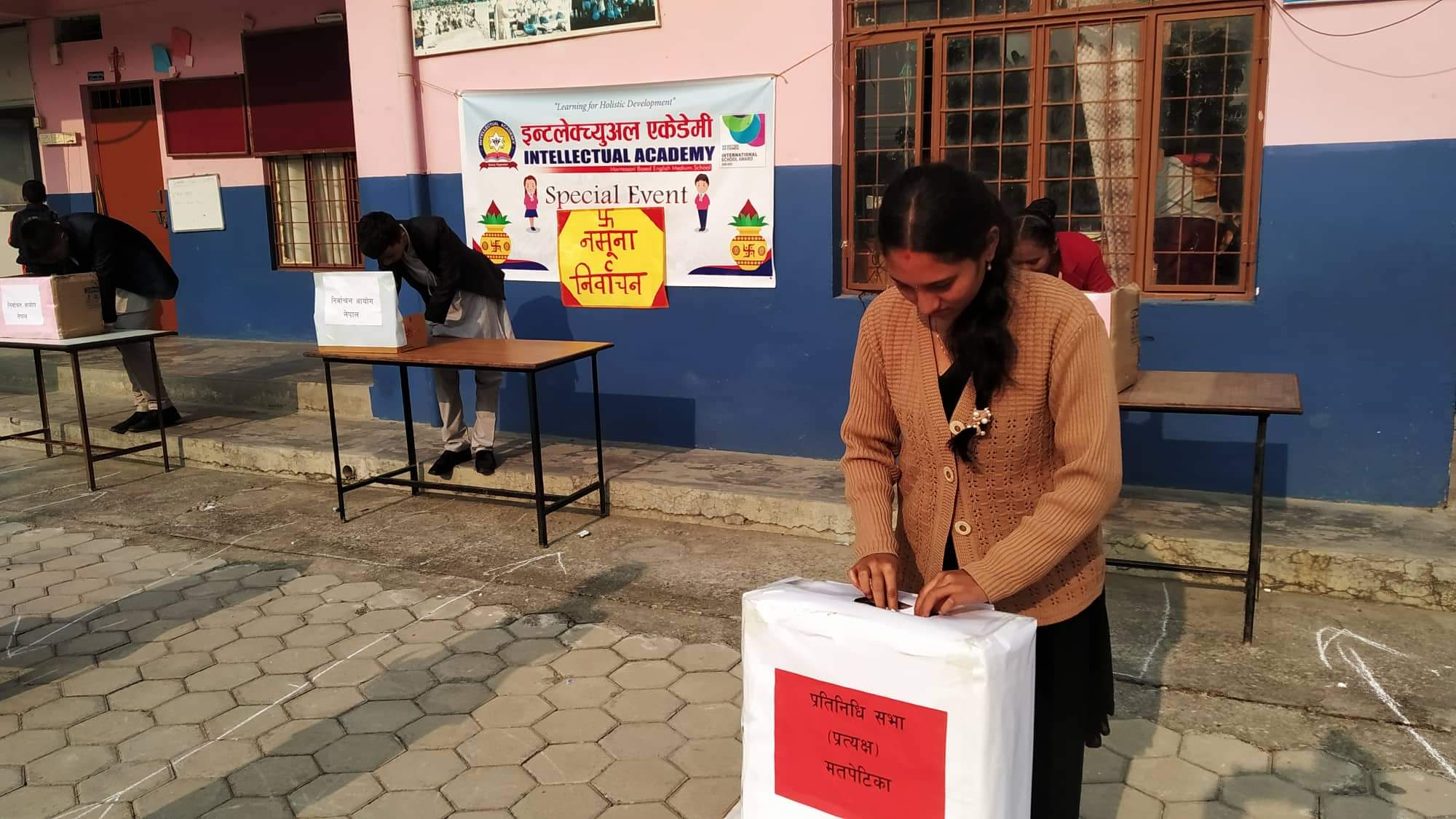 इन्टलेक्च्यूअल स्कुलमा विद्यार्थीहरुले गरे नमुना निर्वाचन