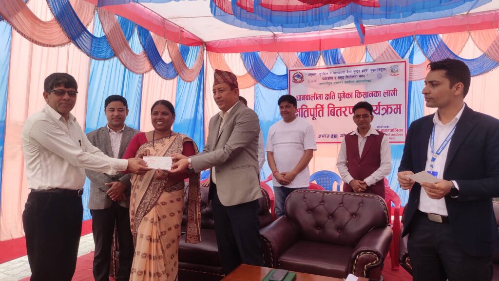 धान बालिमा क्षति पुगेका तिलोत्तमाका २७० किसानलाई राहत रकम