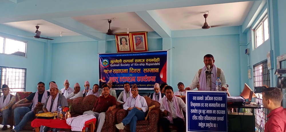 गुल्मेली सम्पर्क समाज रुपन्देहीद्वारा १९ औं स्थापना दिवस, सम्मान तथा रक्तदान कार्यक्रम सम्पन्न