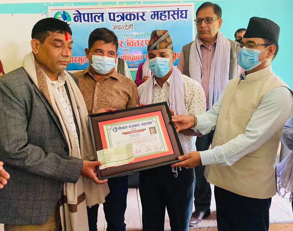 वातावरण पत्रकारिता पुरस्कारबाट पत्रकार टोपराज शर्मा सम्मानित