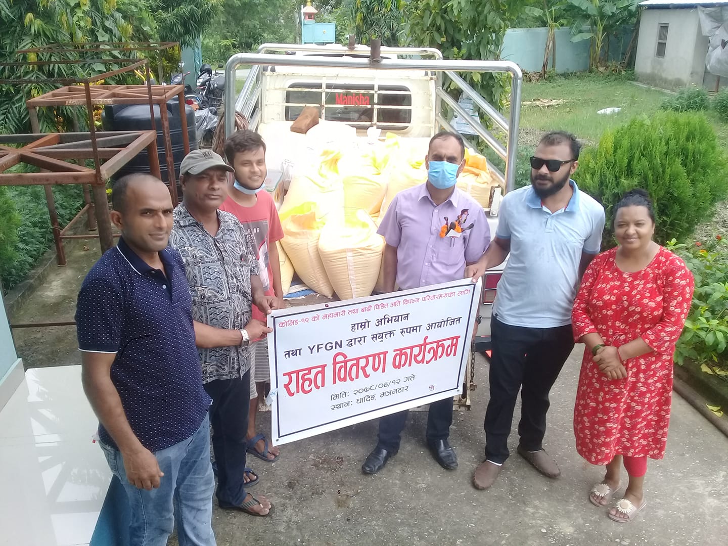 धादिङका कोभिड प्रभावित एवं बाढीपीडितलाई रुपन्देहीका युवाले बाँडे राहत
