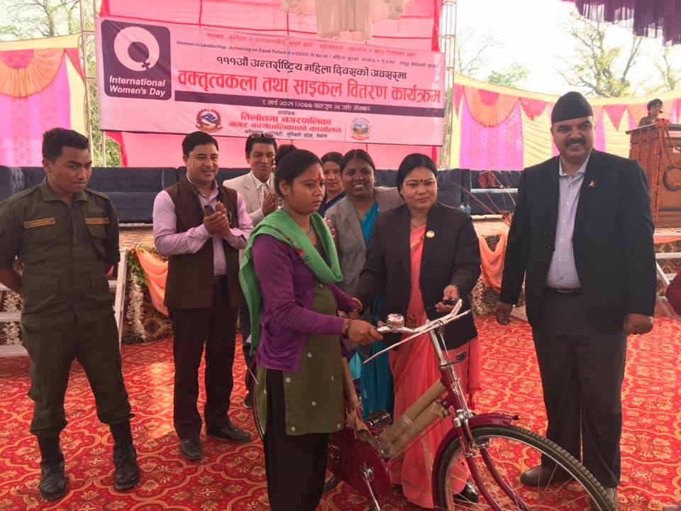तिलोत्तमामा श्रमिक महिलालाई साईकल वितरण
