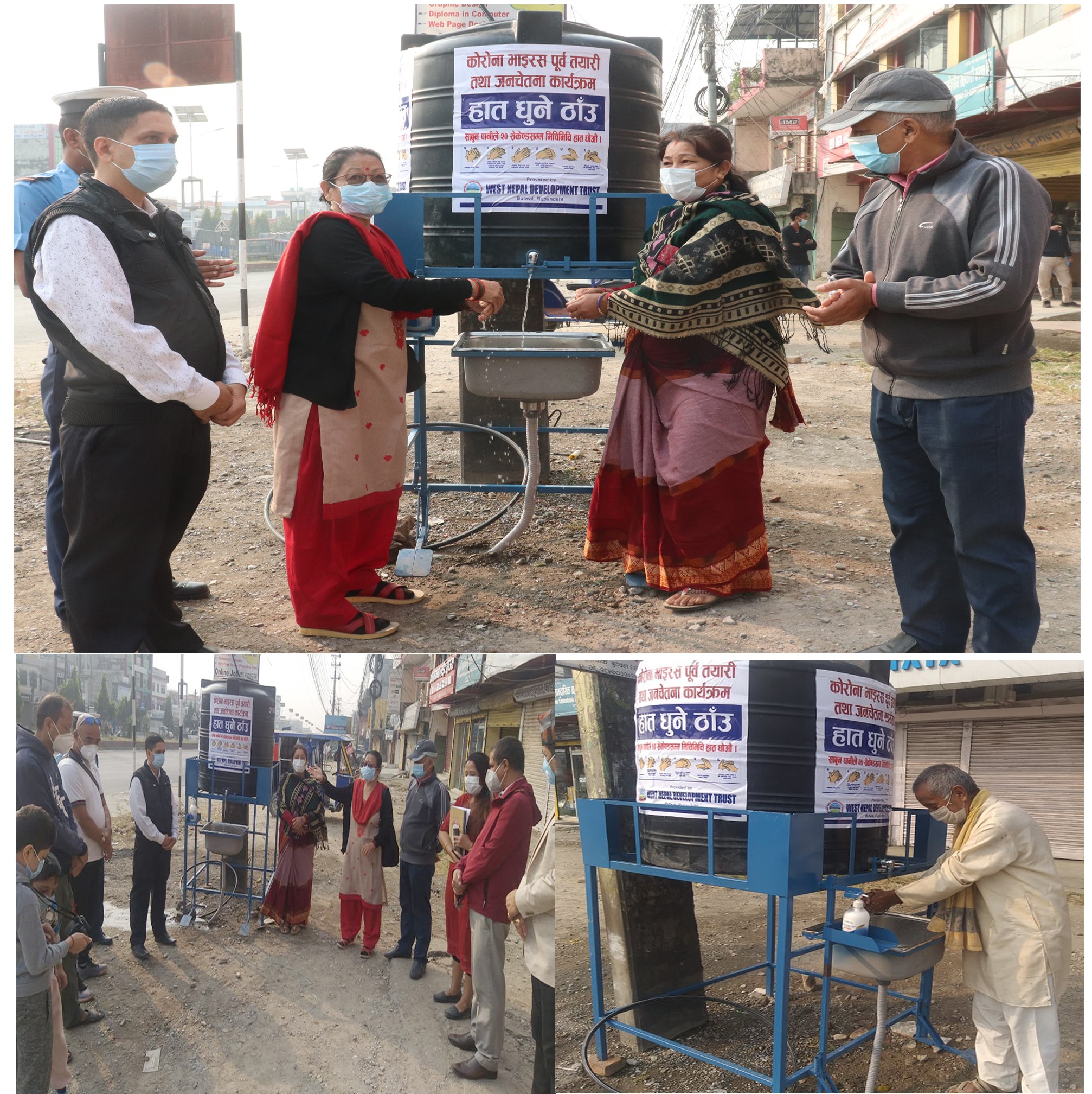 बुटवलको मिलन चोकमा हात धुने स्टेशन
