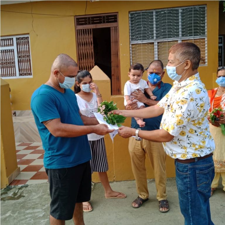 कोरोना जितेका परिवारलाई टोलवासीद्धारा पुष्पगुच्छा सहित बधाई
