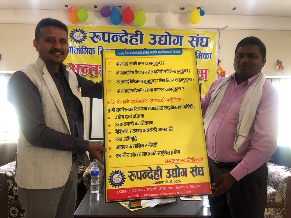 उहाँले स्थानीय श्रोत र साधनको परिचालन गरी उद्यमशिलता विकास, रोजगारी अभिबृद्धि र व्यवसायिक विकासलाई तिव्रता दिने उद्देश्यका साथ संघले जिल्लाका १६ वटै स्थानीय तहसँग छलफल अन्तक्र्रिया कार्यक्रमको आयोजना गरेको बताउनु हुँदै रेमिट्यान्स र सहयोगले धानेको अर्थतन्त्रमा सुधार ल्याउन र स्वाधिन अर्थतन्त्रको निर्माण गर्न कृषिको व्यवसायिकरण, पर्यटन प्रवद्र्धन र उ्रत्पादनशिल बृद्धिका लागि स्थानीय सरकार र निजी क्षेत्रको सहकार्य हुनुपर्ने बताउनु भएको थियो र त्यसका लागि रुपन्देही उद्योग संघ सदैव तत्पर रहेको प्रतिवद्धता समेत व्यक्त गर्नु भएको थियो ।