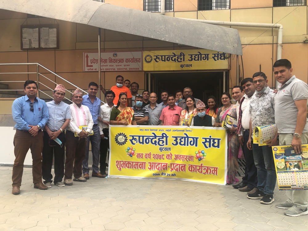 बुटवल । नव वर्ष २०७८ को शुभ सन्ध्यामा रुपन्देही उद्योग संघमा शुभकामना आदानप्रदान कार्यक्रम सम्पन्न भएको छ । संघका अध्यक्ष बाबुराम बोहोराको अध्यक्षतामा सम्पन्न कार्यक्रममा संघका पदाधिकारी, कार्यसमिति सदस्यहरु, सल्लाहकार, वस्तुगत समितिका संयोजकहरु तथा कर्मचारीको सहभागिता रहेको थियो । सो अवसरमा बोल्नु हुँदै अध्यक्ष बोहोराले विषम परिस्थितिसँग जुधेर उद्योग संचालन गर्नुपर्ने अवस्था श्रृजना भएकाले सचेतना अपनाउँदै उद्योग संचालन गर्न आग्रह गर्दै शुभकामना मन्तव्य राख्नु भएको थियो । कार्यक्रममा संघका निवर्तमान अध्यक्ष गणेश प्रसाद अधिकारीले औद्योगिक विकास उन्नती र प्रगतिकालागि सबैलाई शुभकामना दिनु भएको थियो । कार्यक्रममा उपस्थित सबैले एकअर्काबीच शुभकामना आदानप्रदान गर्नृु भएको थियो ।