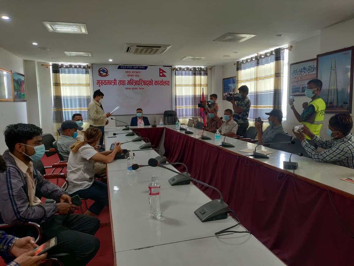 उक्त अवसरमा नेपाल पत्रकार महासंघका केन्द्रीय सदस्य भवानी प्रसाद पाण्डे, महासंघ लुम्बिनी प्रदेश महासचिव विक्रम खड्का, पत्रकार महासंघका पदाधिकारी सदस्य तथा विभिन्न पत्रकार सम्बद्ध संघसंस्थाका प्रतिनिधिहरुको उपस्थिती थियो । यसअघि पत्रकार महासंघले आन्तरीक मामिला तथा कानूनमन्त्रीलाई ध्यानआर्कषण गराउँदै ज्ञापनपत्र बुझाएको थियो । आईतबार लुम्बिनीका ११ वटा जिल्ला स्थित पत्रकार महासंघले प्रमुख जिल्ला अधिकारी मार्फत मुख्यमन्त्रीलाई ज्ञापनपत्र बुझाइएको छ ।