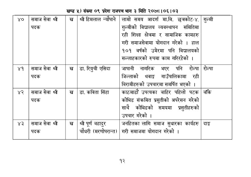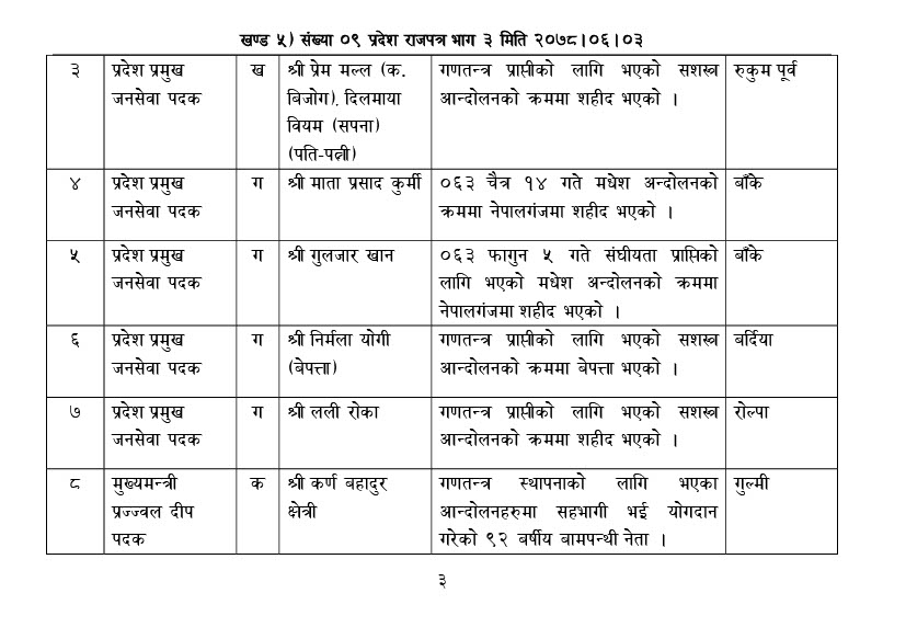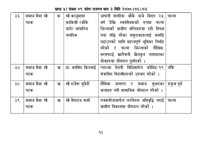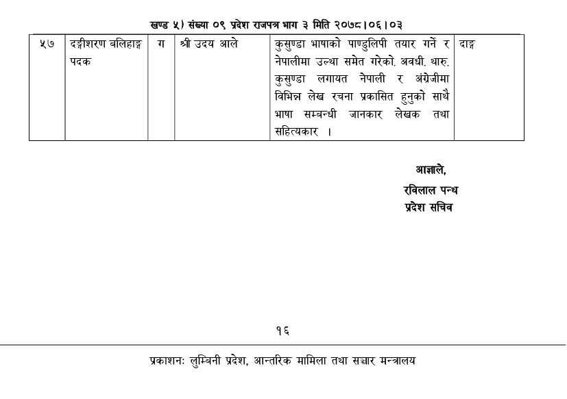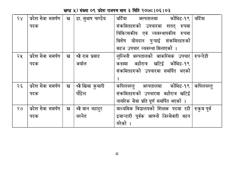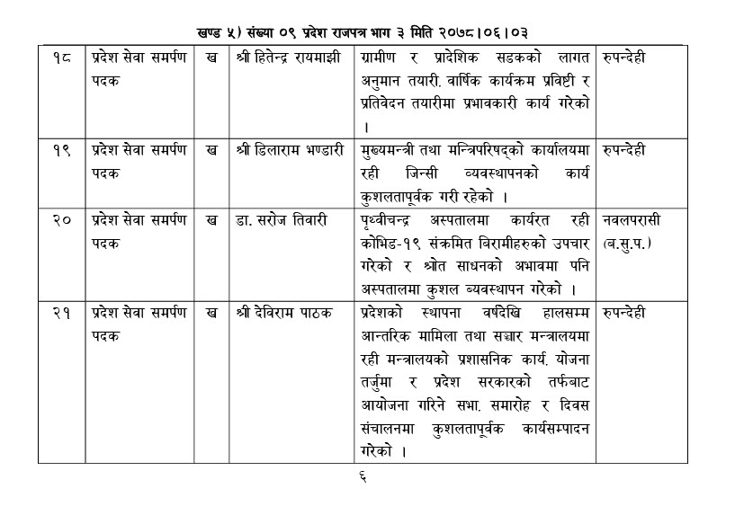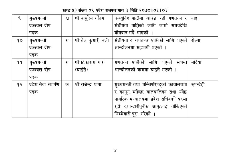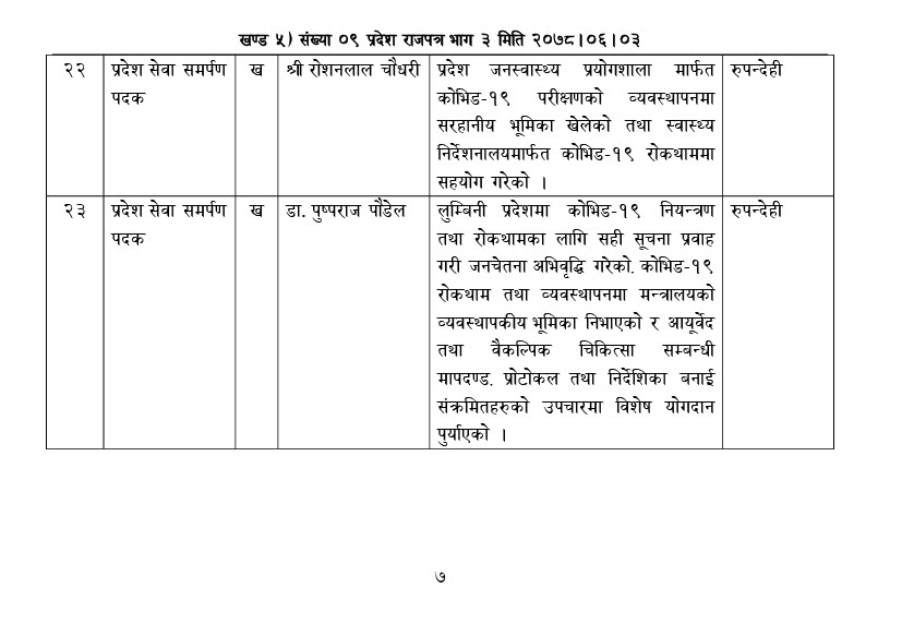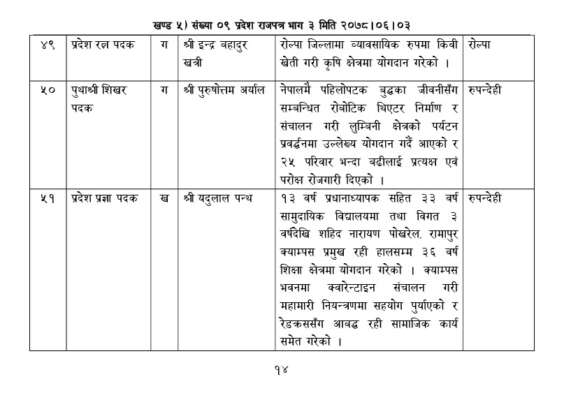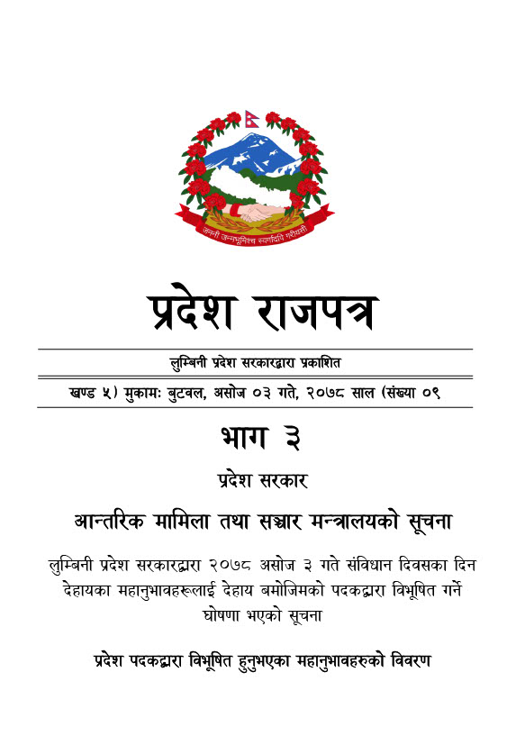 लुम्बिनी प्रदेशमा संविधान दिवसको अवसरमा ५७ जना विभुषित (सूचीसहित)