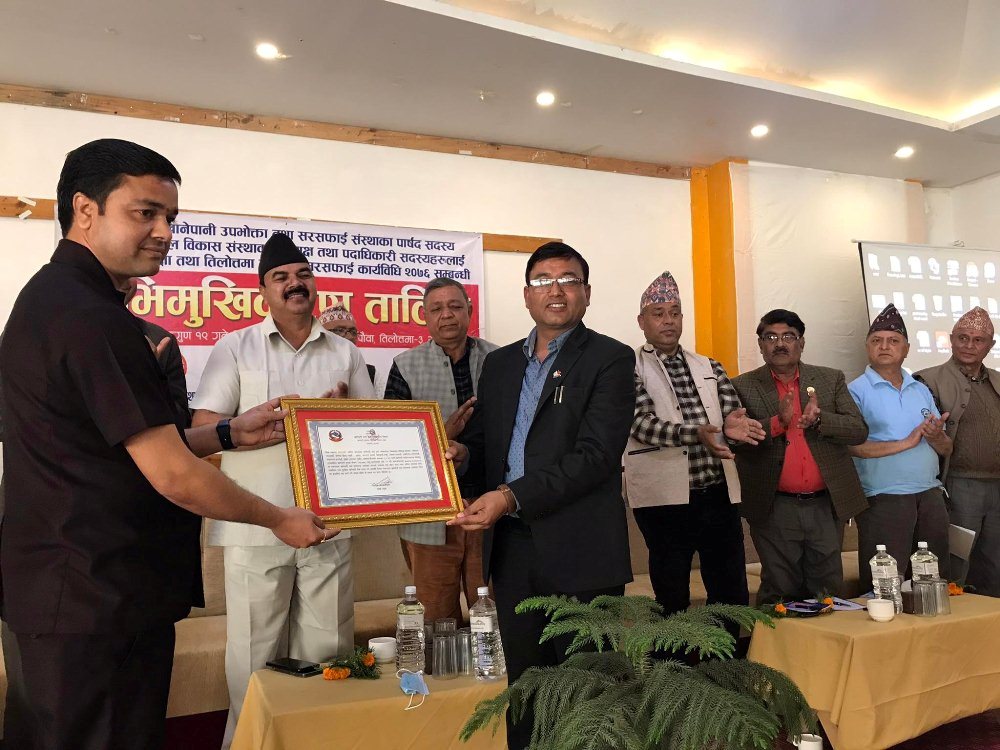 त्यसअवसरमा मुलुककैं उत्कृष्ट खानेपानी आयोजनाको रुपमा शंकरनगर खानेपानी संस्थालाई विभागको तर्फबाट प्राप्त भएको सम्मान पत्र अध्यक्ष झविन्द्र भण्डारीलाई हस्तान्तरण गरिएको थियो । यस्तै टोल विकास संस्था सञ्जाललाई प्रशंसा पत्र प्रदान गरिएको थियो ।