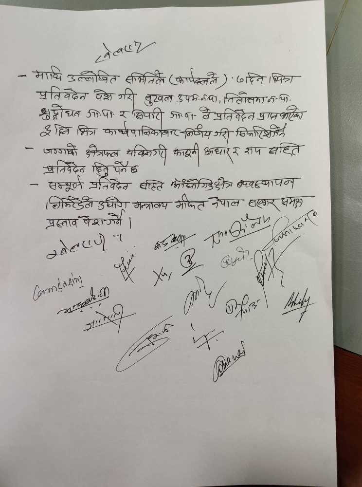 जग्गाको क्षेत्रफल यकिन गरी कानूनी आधार र रायसहित प्रतिवेदन दिनुपर्ने, सम्पूर्ण प्रतिवेदन सहित औद्योगिक क्षेत्र व्यवस्थापन लिमिटेडले उद्योग मन्त्रालयमार्फत नेपाल सरकारसमक्ष प्रस्ताव पेश गर्ने निर्णय बैठकले गरेको छ ।