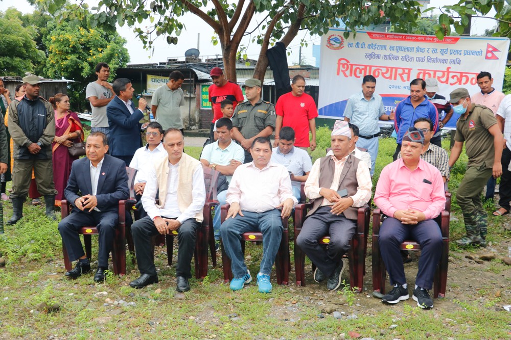 स्थानीय निर्वाचन २०७९ बाट निर्वाचित भएर पदस्थापन गरेको १ सय दिन पूरा भएको अवसरमा शुक्रबार एक कार्यक्रमका बीच नगर प्रमुख खेलराज पाण्डेयले पार्कको शिलान्याश गर्नुभयो ।