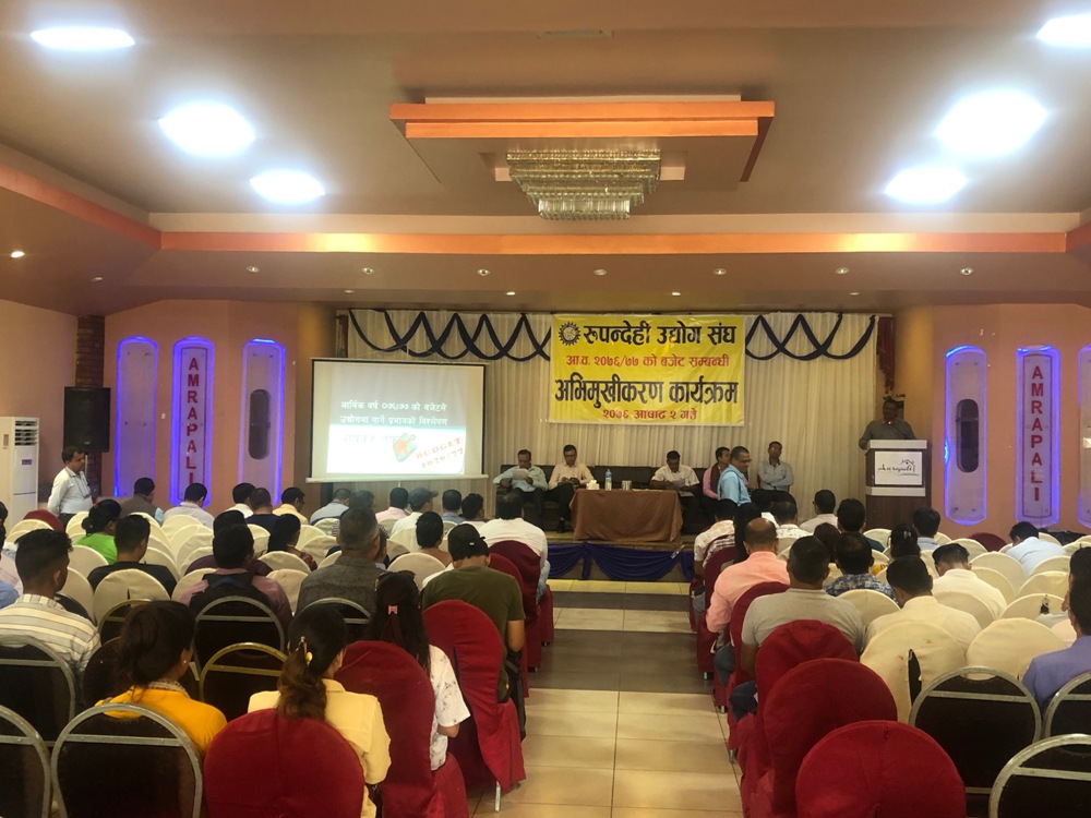 रुपन्देही उद्योग संघले सोमवार आफ्ना सदस्य उद्योगीहरुलाई आर्थिक बर्ष २०७६÷७७ को संघीय वजेटका विषयमा अभिमुखिकरण कार्यक्रम सम्पन्न गरेको छ ।
