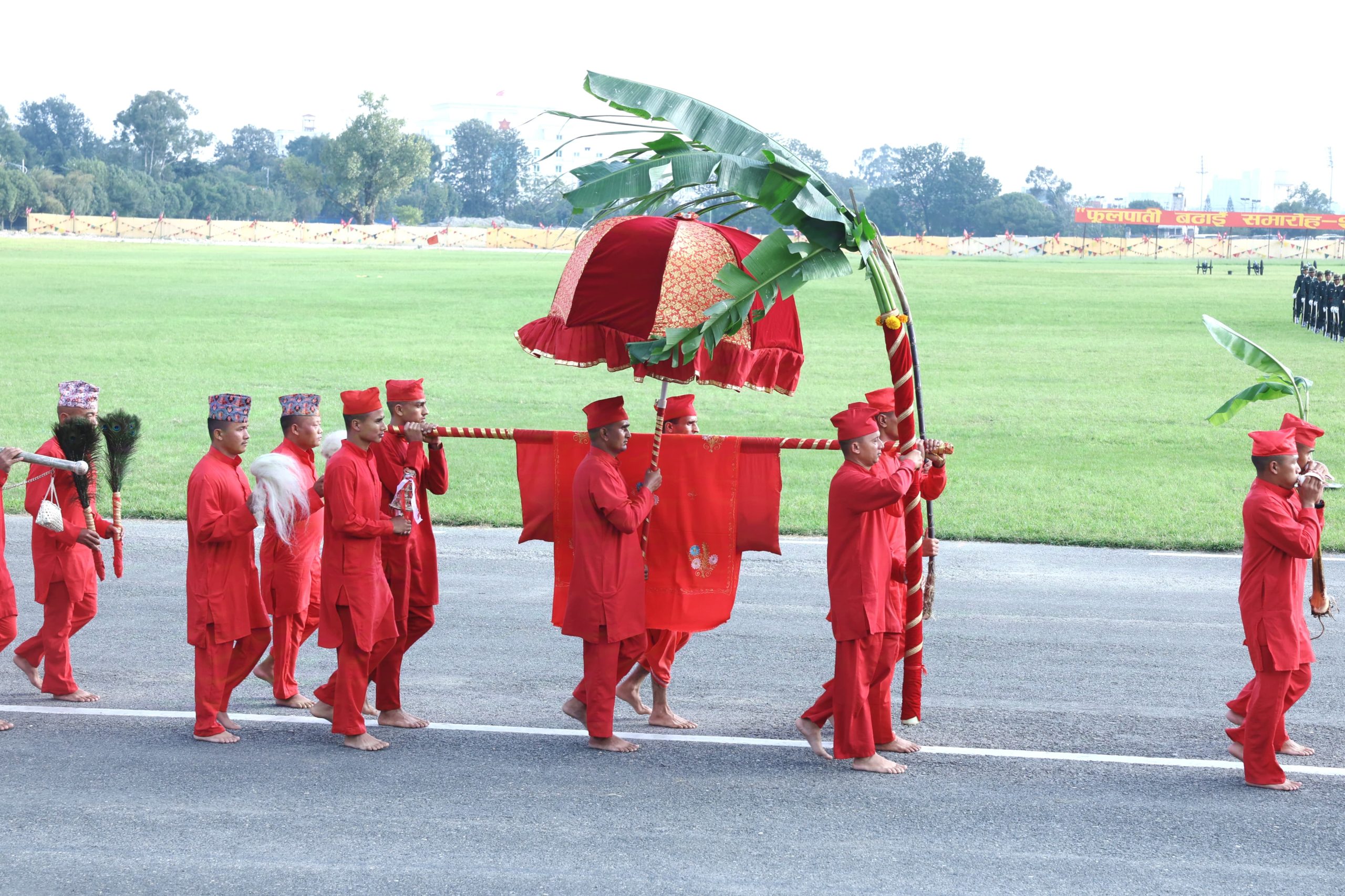 राज्यकालीन अवस्थादेखि मगर पुजारी, बाजागाजासहित शार्दूल जङ्ग गुल्म (गुर्जु पल्टन) तथा नेपाली सेनाका अन्य युनिट सबयुनिट प्रत्यक्ष रूपमा सहभागी भई ऐतिहासिक फूलपाती भित्र्याउने कार्यले राष्ट्रिय पर्व संवद्र्धन र प्रवद्र्धनमा ठूलो भूमिका देखिँदै आएको छ ।