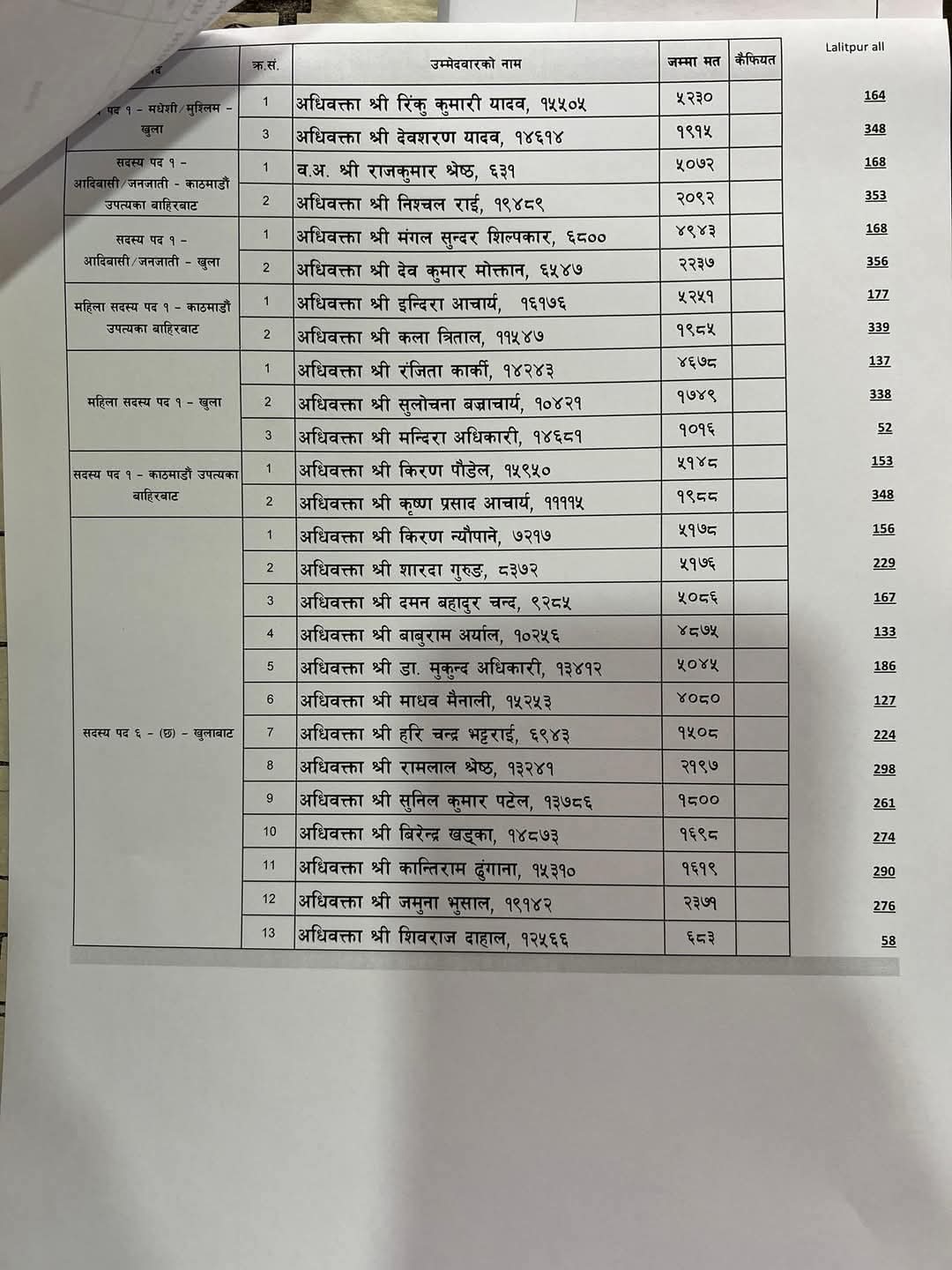 गत शनिवार सम्पन्न निर्वाचनको मतगणना बिहिबार सम्पन्न भए पछि बरिष्ठ अधिवक्ता मिश्रले प्रतिस्पर्धी उम्मेदवार भन्दा २ हजार ४३१ मत बढीसहित ५ हजार ५२ मतसहित विजयी भएका हुन । उनका निकटतम प्रतिस्पर्धी विपक्षी गठबन्धनबाट भिडेका नेकपा माओवादी केन्द्र समर्थित बरिष्ठ अधिबक्ता २ हजार ६२१ मतमा सिमित हुन पुगेका छन।