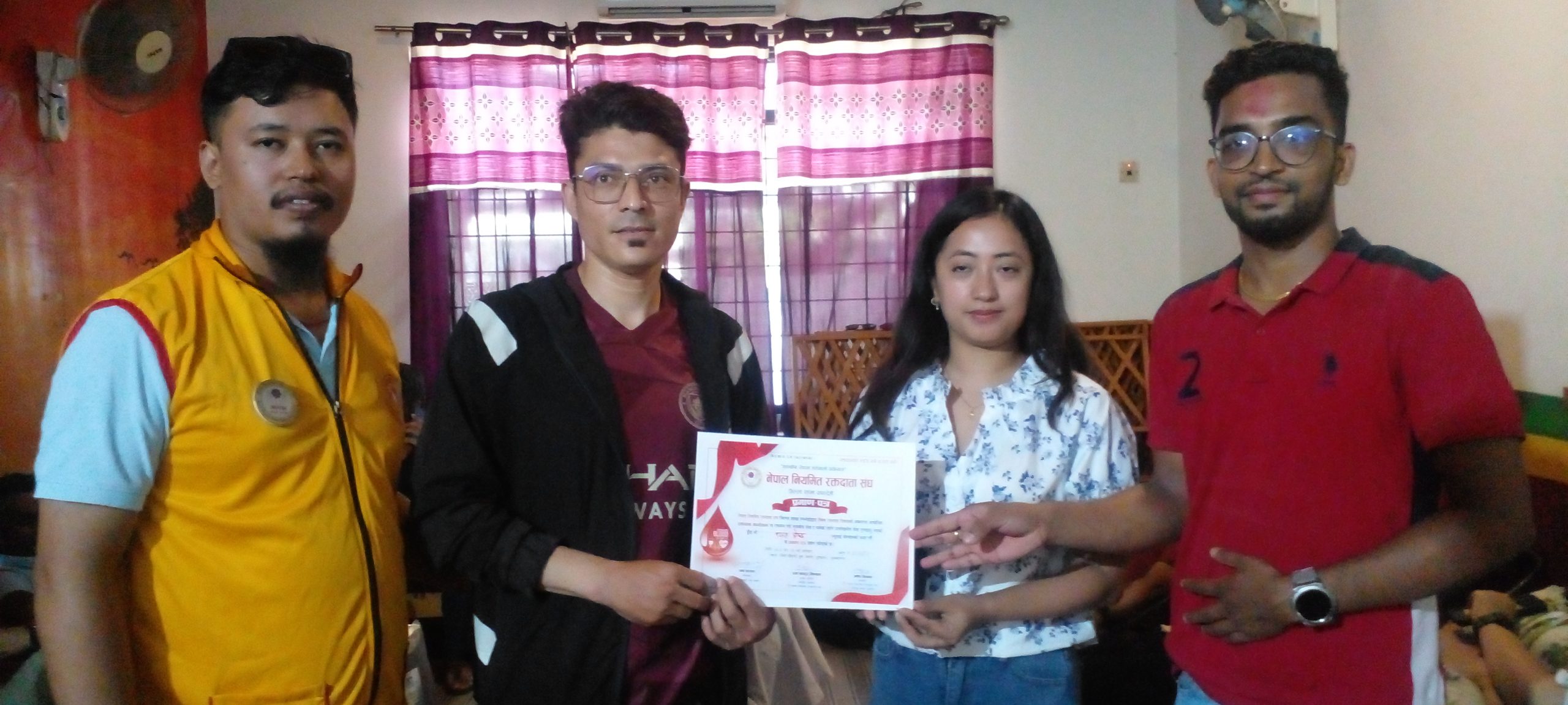 नियमीत रक्तदाता संघका केन्द्रिय अध्यक्ष दया बहादुर सिल्वालको प्रमुख आतिथ्यता , संघका जिल्ला अध्यक्ष अषेस सिलवालको अध्यक्षतामा सम्पन्न कार्यक्रममा चिया चिया चौतारीका सन्चालक पवन बस्यालले स्वागत मन्तव्य राख्नुभएको थियो ।