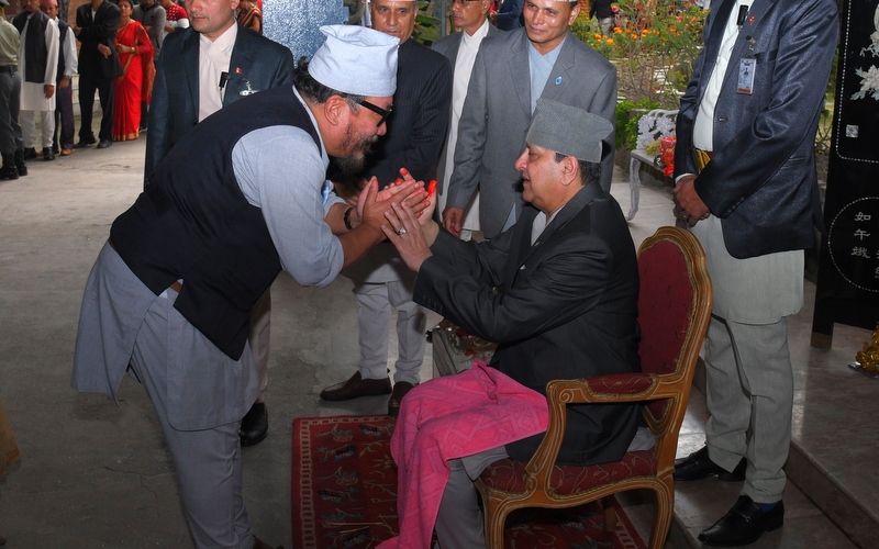 पूर्वराजाको हातबाट टीका ग्रहण गर्न राजनीतिक दलका नेताहरू, कलाकार, पत्रकार र सर्वसाधारणको भीड लागेको थियो।
