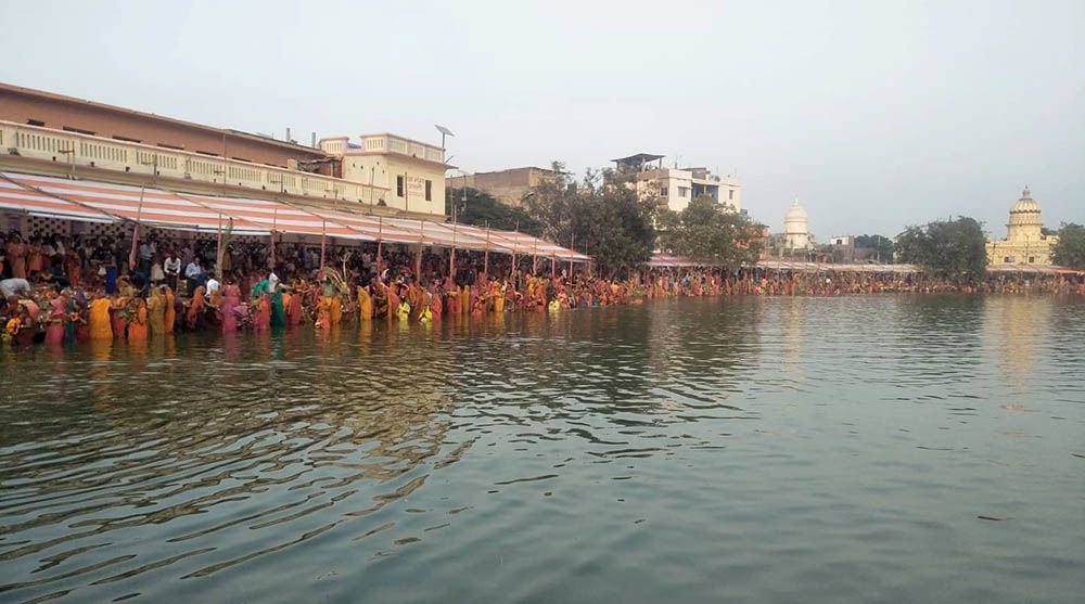 धनुषा । छठ पर्व अन्तर्गत शनिबार साँझ अस्ताउँदो सूर्यलाई अर्घ्य दिइएको छ । जनकपुरमा छठ पर्वका पोखरी र जलासय लगायतका स्थान बेहुलीझै सिंगारिएको छ । जिल्लाका विभिन्न स्थानका नदी र पोखरीमा जम्मा भएका श्रद्धालुहरुले समेत शनिबार साँझ सूर्यलाई अर्घ्य दिए । जनकपुरको गंगासागर लगायत जिल्लाका विभिन्न स्थानका जलासय सिँगारिएको छ ।