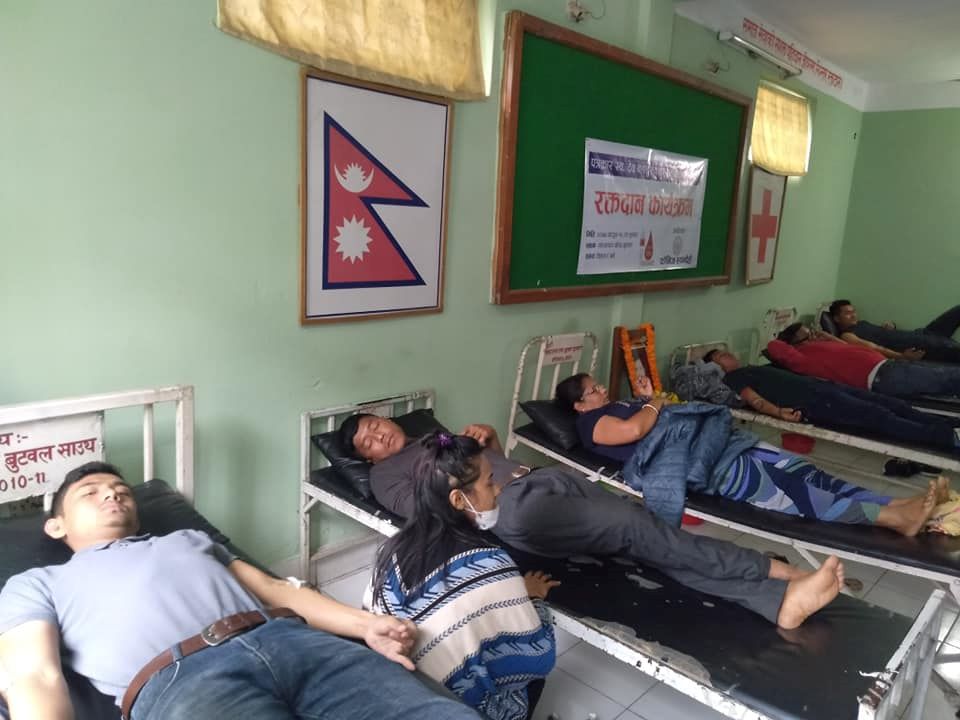 बुटवल । नेपाल आदिवासी जनजाति पत्रकार महासंघ (फोनिज) रुपन्देहीले रक्तदान कार्यक्रमको आयोजना गरेको छ । फोनिज रुपन्देहीका संस्थापक अध्यक्ष पत्रकार स्व. देव बहादुर पाटाको ११ औं स्मृतिमा रक्तदान कार्यक्रमको आयोजना गरेको हो । बुधबार बुटवल रक्तसञ्चार केन्द्रमा आयोजना गरिएको रक्तदान कार्यक्रममा ५५ युनिट रगत संकलन गरिएको छ ।