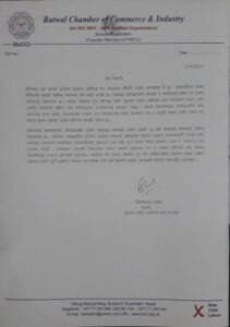 बुटवल । बुटवल उद्योग बाणिज्य संघ रुपन्देहीले कोरोना भाईरस संक्रमणको जोखिमबाट बँच्नका लागि सेचत हुन आम नागरिकलाई आह्वान गरेको छ । संघले शुक्रबार एक बिज्ञप्ती जारी गरेर विश्वव्यापी रुपमा बढ्दै गएको कोरोनाको संक्रमण हुन नदिन सरकारका तर्फबाट पनि सजगता अपनाउन आग्रह गरेको हो ।