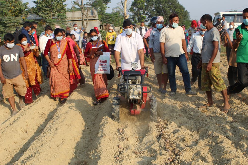 तिलोत्तमा। रुपन्देहीको तिलोत्तमा नगरपालिकामा यो वर्षबाट ६० बिगाहा क्षेत्रफलमा आलुको सामूहिक खेती सुरु गरिएको छ । कोरोना महामारीमा स्थानीय स्तरमैं रोजगारीका अवसर सिर्जना गर्दै आलुको उत्पादन बढाउन नगरपालिकाले किसानलाई व्यवसायिक आलु खेती तर्फ अग्रसर गराएको हो ।