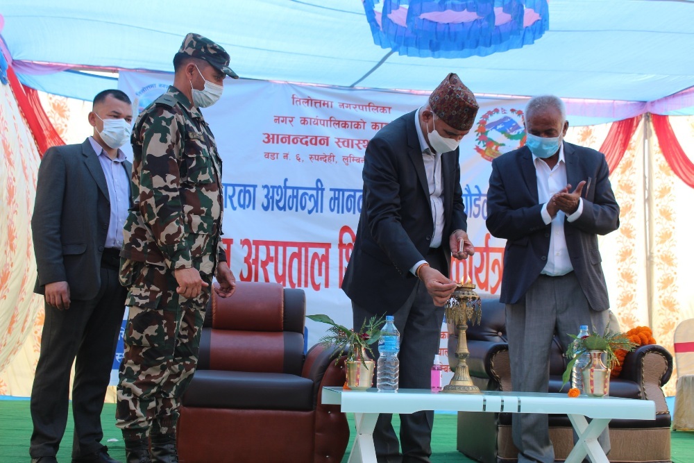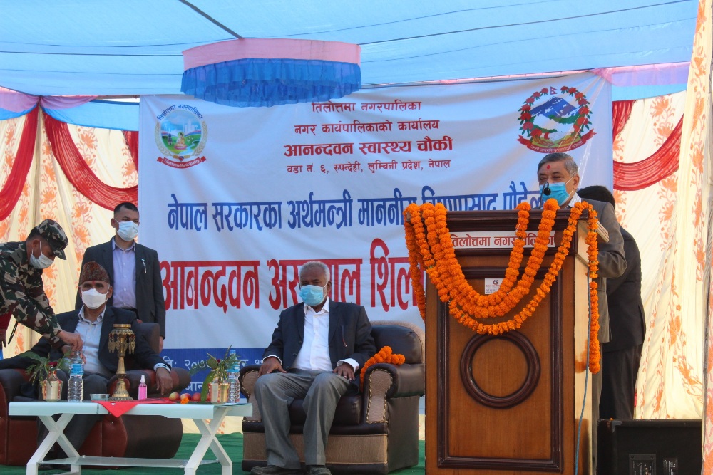 तिलोत्तमामा १५ शैंयाको सरकारी अस्पताल शिलन्यास,बजेटको सुनिश्चितता हुन्छ : अर्थमन्त्री पौडेल